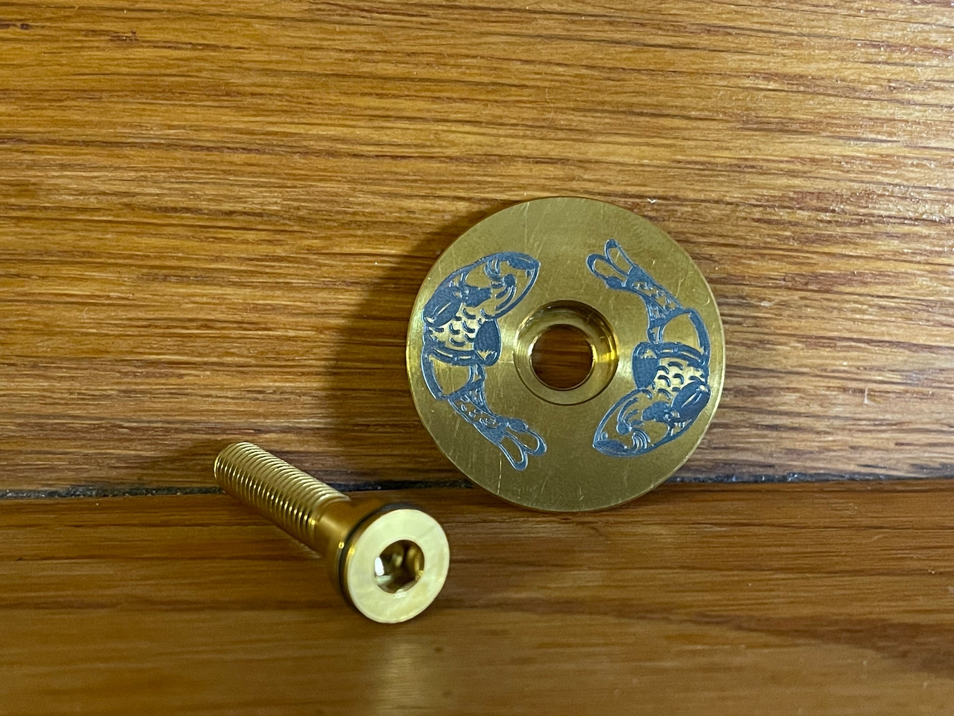 Titanium top caps with Merman Stylings. They are light and they delight.